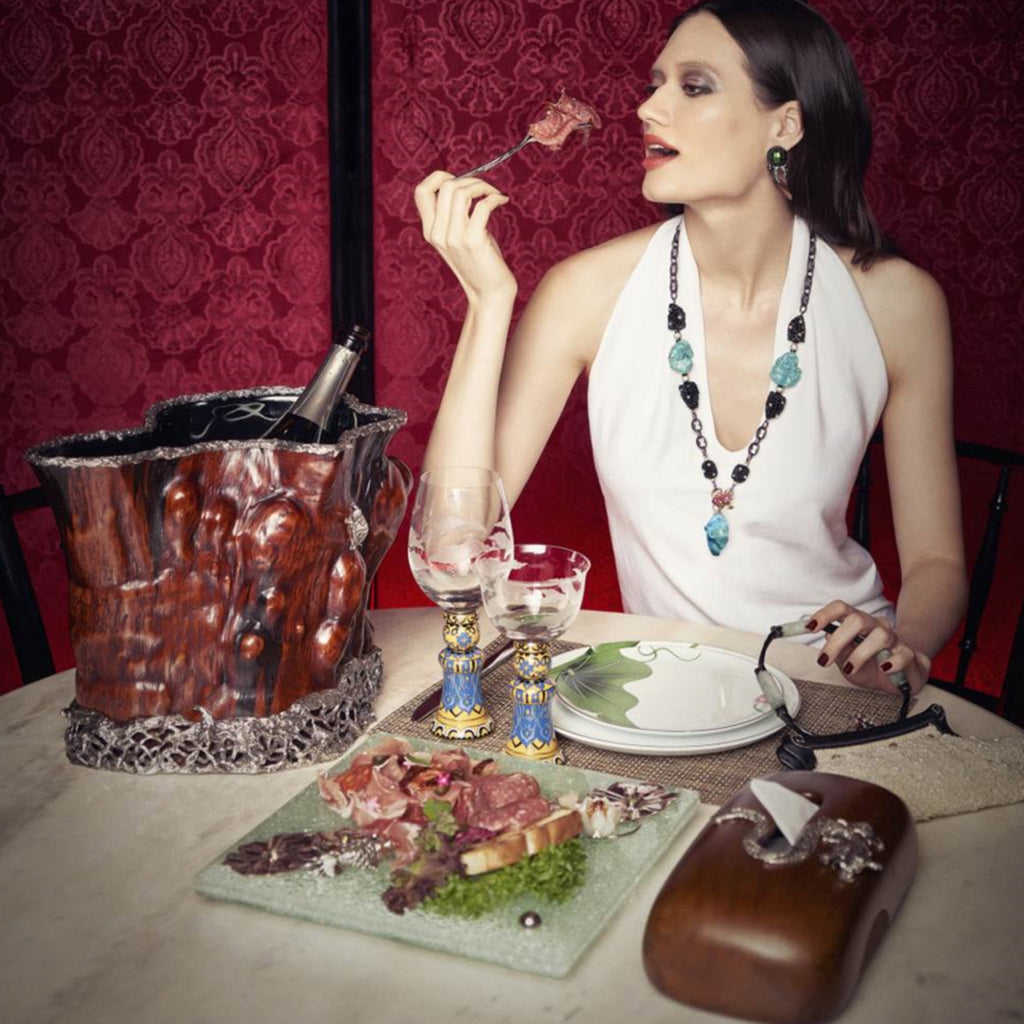 The Lotus flower was crafted from Mother of Pearl shell, Pink Tourmaline and 18 K gold lotus pistils.