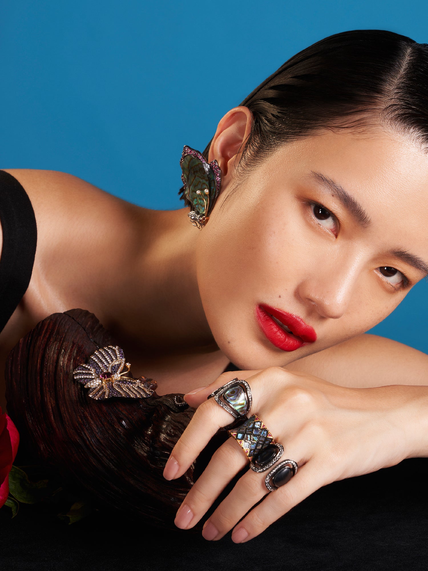 Flexible Ring 5 rows with Tsavorite and Scarab