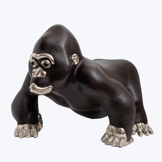 Hand-crafted Gorilla stool covered with sustainably farmed brown leather and key features decorated with metal.