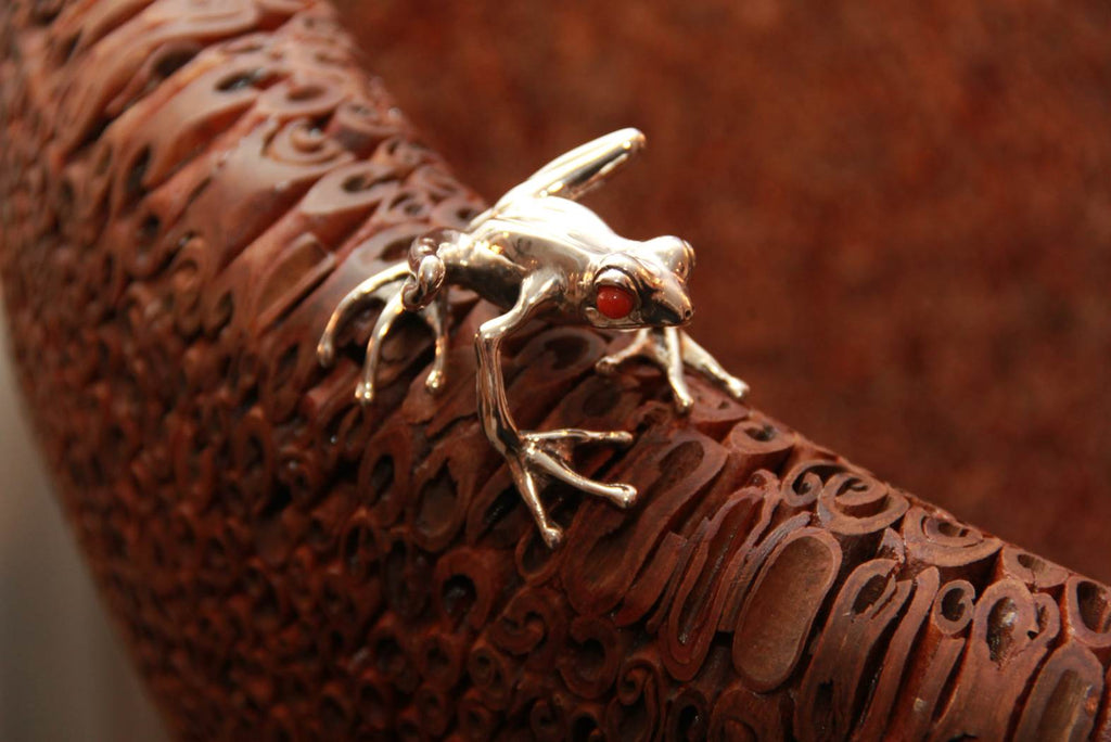 Hand-made cinnamon bowl and with Sterling Silver frogs, made in collaboration with a famous Japanese artist, Seiki Toridge.
