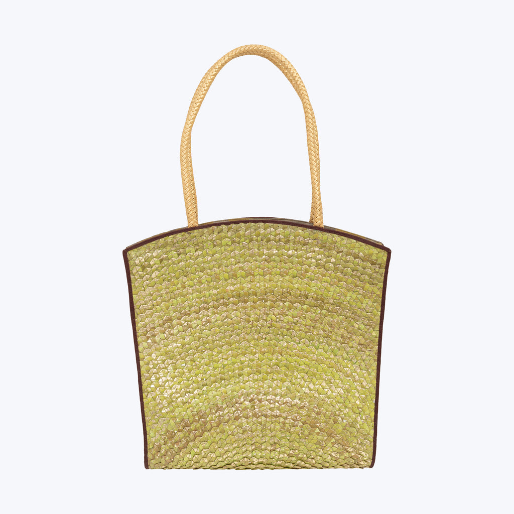 | An oriental inspired contemporary Tote bag, woven painstakingly by skilled artisans from Java, Indonesia, designed and commissioned by Lotus Arts de Vivre. The bag is crafted traditionally using leaves from the Lontar Palm, lined with Silk inside and the flexible handles coloured in Gold. The Lontar bag is versatile in its uses, perfect for the farmers market, throw in towels for beach days, carry laptops and tablets for casual coffee meetings or an easy carryall for weekend road trips and weekday strolls. As a material, Lontar palm, a tall fanning palm has been utilized for centuries across Indonesia for both it’s sustainable hardwood as well as it's sweet sap which is a source for palm wine and sugar. The palms leaves are traditionally used for weaving and thatching. The lontar leaf was used to inscribe the ancient Hindu and Buddhist texts, and in the manufacture of everyday items such as mats, bags and hats due to its sturdiness. After having the Lontar woven, the handbag took 3-4 weeks to finish with 4 designers and craftsmen involved. Dimension: 37x19x35 cms. Weight: 902.66 gms. |