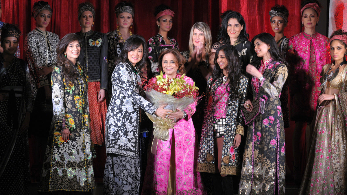 India’s prominent fashion designer Bina Modi, whose work has preserved the traditional “Gara” and “Chikan” embroidery techniques, created a contemporary Indian-Western luxury collection using Thai silk exclusively for the evening.