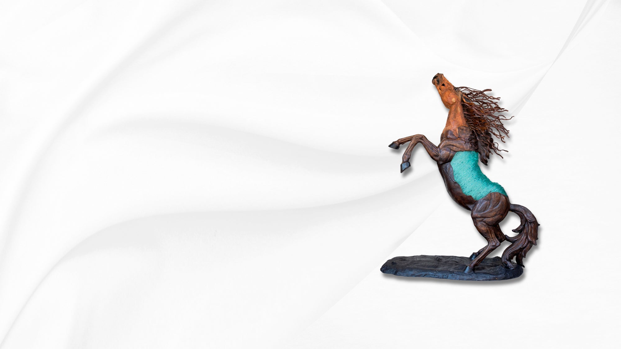 Horse sculpture crafted from wood, glass and brass