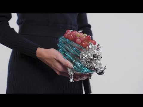 Bowl made of hand-blown glass and embellished with Sterling Silver Boar.