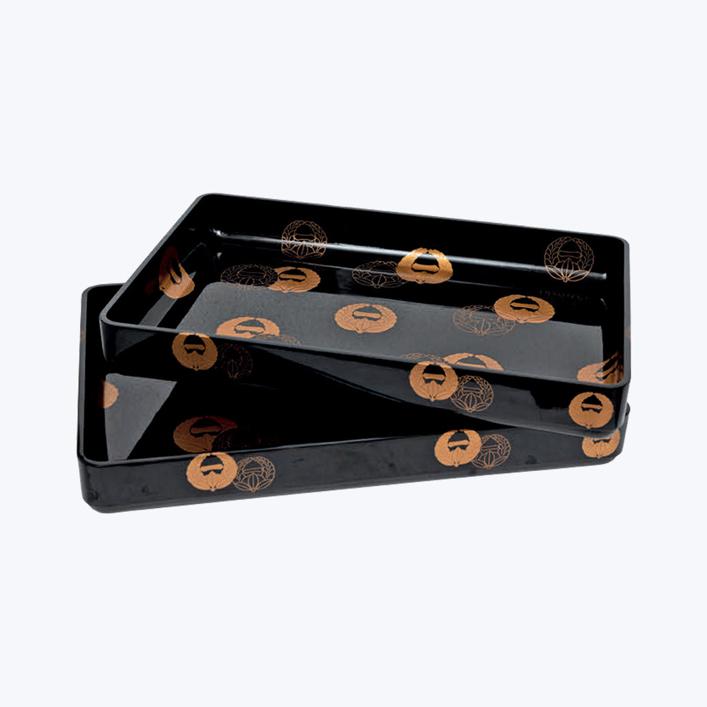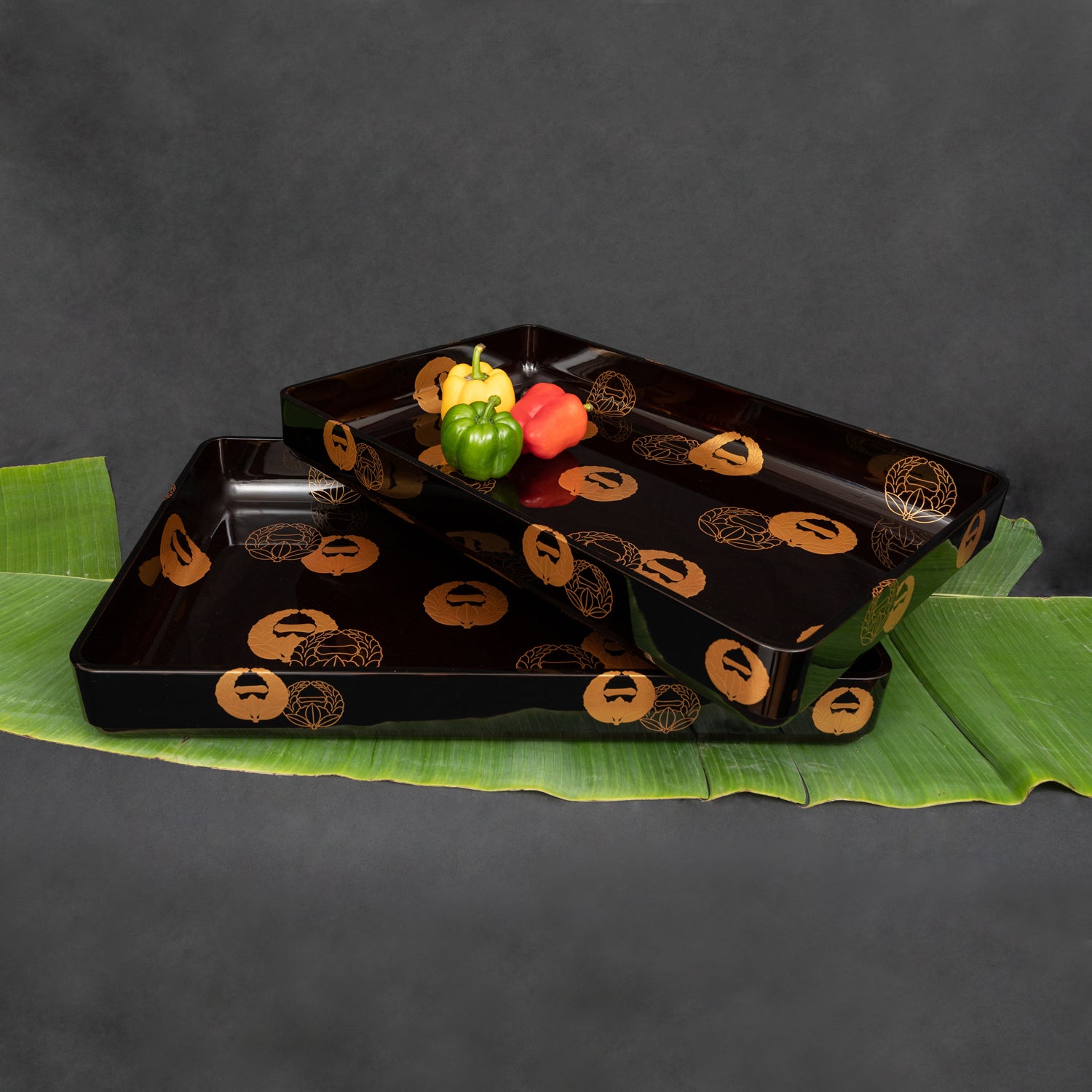 Trays like these were used to bear gifts for the nobles and the royal courts and were used in a wealthy aristocratic households of Japan. Further, Trays with lacquered surfaces are not only useful for food serving, but excellent for use as display trays, especially the contrasting black and gold. The smooth and glossy lacquer finish often enhances the quality of the item been presented. The trays where the center has been lacquered are more for decorative purposes, while trays with corner décor and black finished are used more for serving. Apart from being very practical, waterproof, heat resistant and easy to clean, it became the motor of visual arts in Asia.