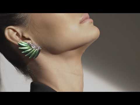 The scarabae beetle was holy in ancient Egypt and China because of its remarkable reproduction process. Each piece is carefully selected according to colour and is shaved to thickness and then glued on. The colour of each piece is extremely fast and will last for several hundred years. It will also change from green to blue depending on the light. This is an exotic and magical set of jewelry which requires great skills to produce. All done by hand at Lotus Arts de Vivre.