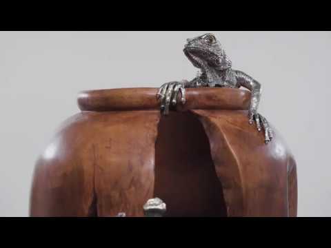 Teak Wood jar with Silver Iguana
